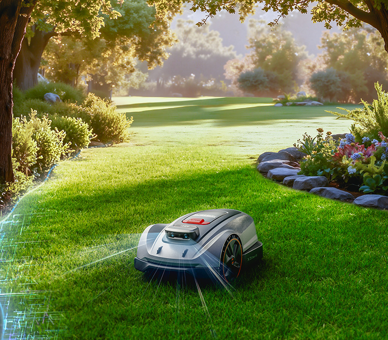 A fejlett Vision AI technológiával működő robotfűnyíró binokuláris kamerával van felszerelve, és intelligensen képes felismerni az akadályokat, azonosítani a gyep határait, valamint valós időben módosítani az útvonalát a biztonságosabb és hatékonyabb fűnyírás érdekében.